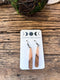 Aqua resin with gold flakes and wood accents create a modern boho vibe in these lightweight, minimalist earrings. Perfect for adding a natural touch to any outfit, they feature hypoallergenic, nickel, and lead-free hooks. With a 1.25-inch length, they offer comfort and effortless style for everyday wear.